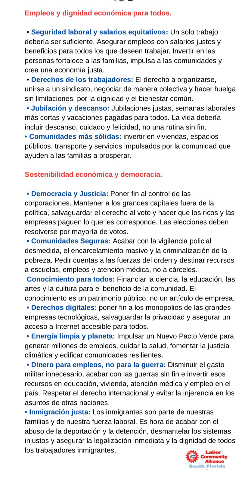 Our primary goal is to advocate for progress and justice, ensuring equal opportunities for all. We are dedicated to supporting legislation that promotes justice, dignity, and peace for all people, with a particular focus on policies that prioritize the working class community.